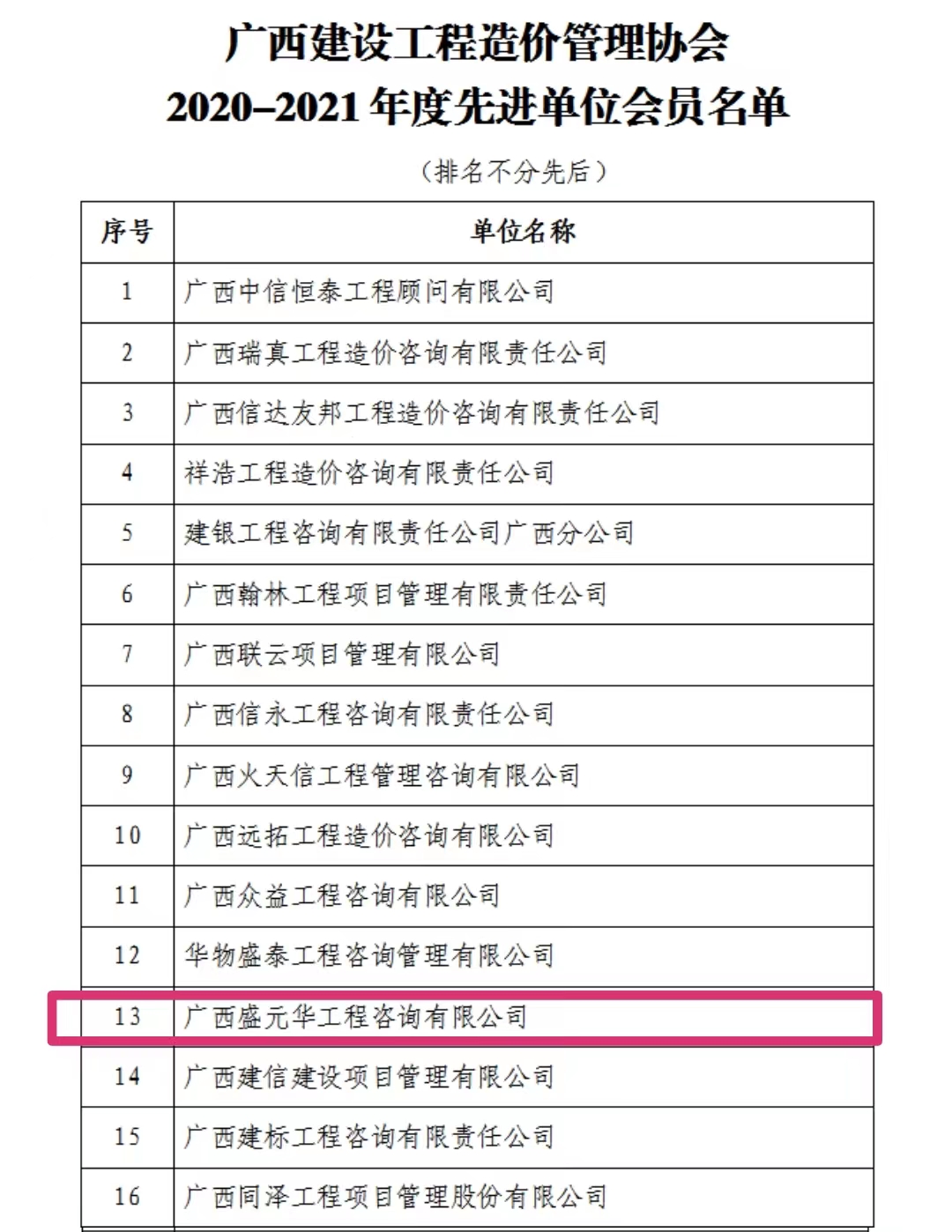 據(jù)悉,廣西盛元華至2019年以來蟬聯(lián)獲得廣西建設(shè)工程造價(jià)管理協(xié)會的先進(jìn)單位會員,這不僅是行業(yè)協(xié)會和社會各界對廣西盛元華篤行不怠,砥礪奮進(jìn)為廣大客戶提供高品質(zhì)服務(wù)的肯定,更激勵(lì)了每一位盛元華人以“誠信為本 有諾必踐”為宗旨,在未來的工作中不斷提高服務(wù)品質(zhì),提高行業(yè)競爭力而不懈努力!