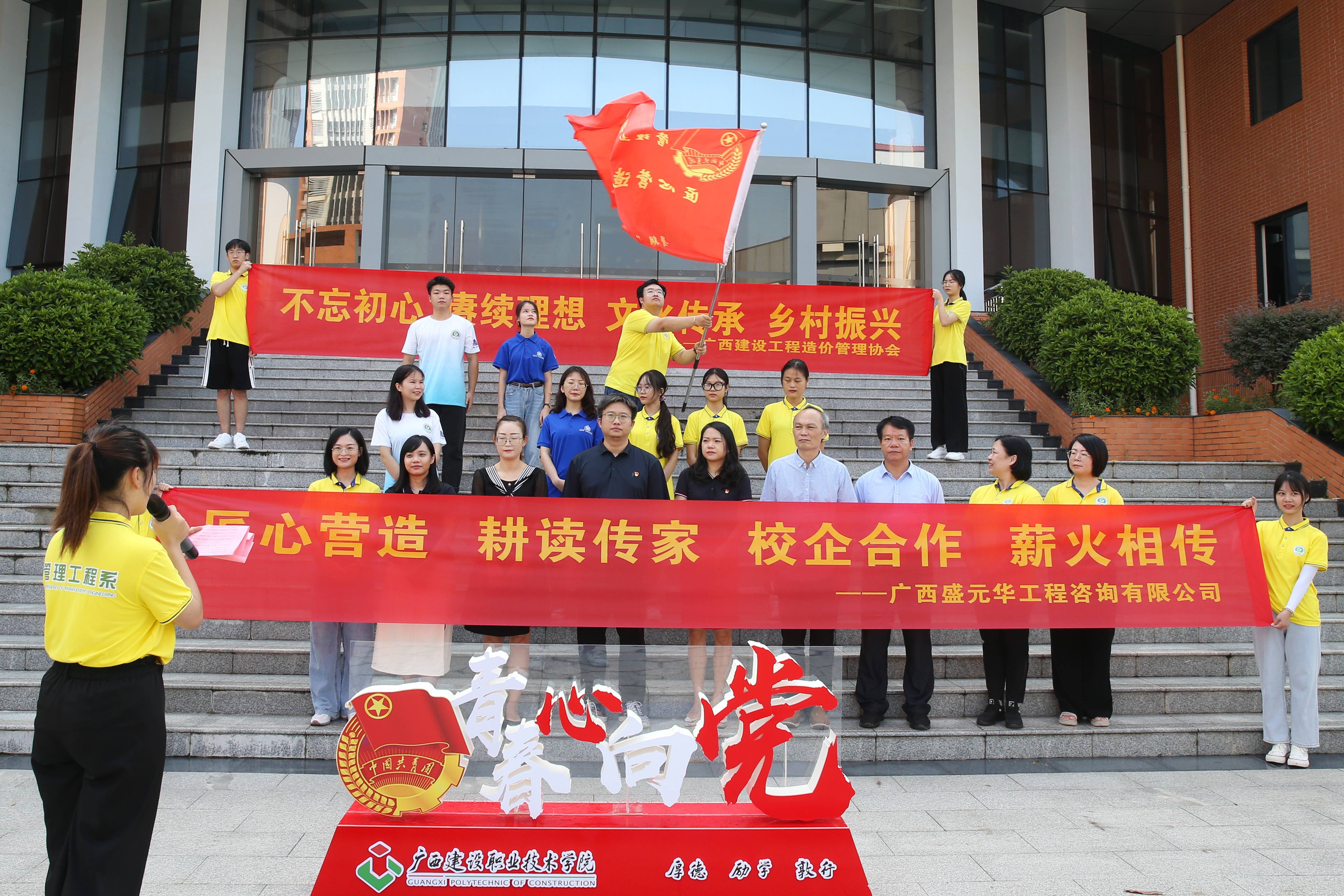 7月26日上午,廣西建設(shè)職業(yè)技術(shù)學(xué)院管理工程系團(tuán)總支“匠心營造·耕讀傳家”古建筑文化傳承實踐團(tuán)再次出征,廣西盛元華工程咨詢有限公司(已下簡稱我公司)副總經(jīng)理黃藝、BIM中心負(fù)責(zé)人覃永松作為校企合作企業(yè)方代表,與廣西建設(shè)工程造價管理協(xié)會黨支部書記王燕蓉、辦公室主任楊智、廣西建設(shè)職業(yè)技術(shù)學(xué)院管理工程系羅輝副主任共同出席出征儀式。本次實踐團(tuán)由管理工程系周慧玲、郭海棠、封炫妃、甘麒燕老師帶隊。