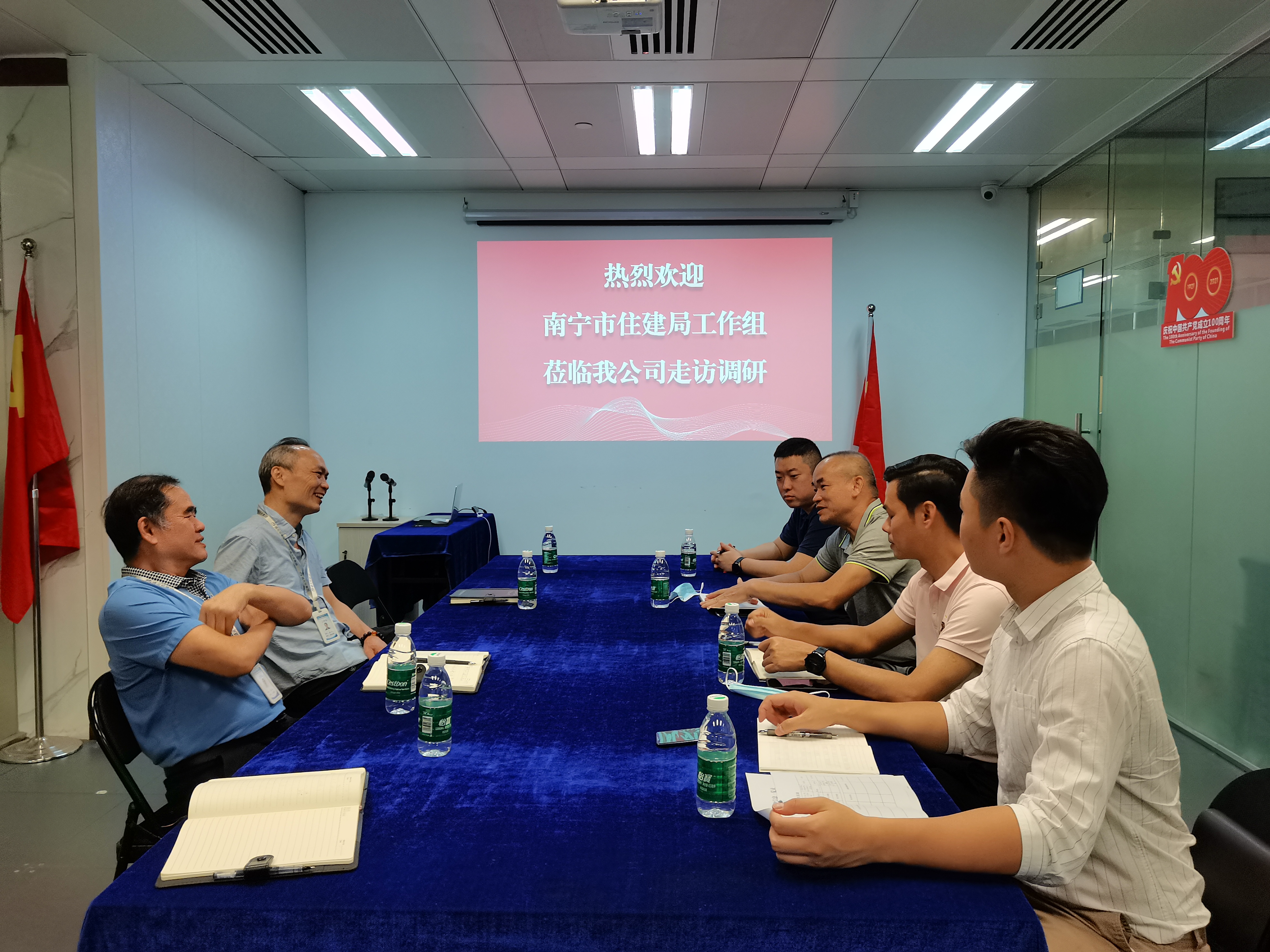 9月3日上午,南寧市住房和城鄉(xiāng)建設(shè)局調(diào)研工作組蒞臨我公司走訪調(diào)研,公司總經(jīng)理陳浩、副總經(jīng)理黃藝作為企業(yè)方代表在公司會議室與調(diào)研工作組進行會談。