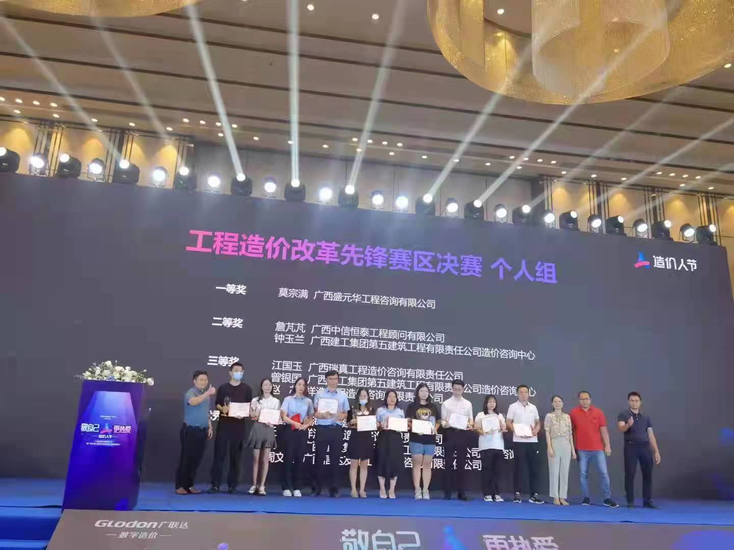 2021年廣西區(qū)第三屆綜合造價(jià)技能大賽(以下簡(jiǎn)稱“大賽”)的系列比賽已全部結(jié)束,在9月17日的頒獎(jiǎng)典禮上,公司參賽團(tuán)隊(duì)以優(yōu)異的成績(jī)?cè)诒緦眉寄艽筚愔性俅问斋@榮譽(yù):榮獲工程造價(jià)改革先鋒賽區(qū)個(gè)人組第一名和企業(yè)組優(yōu)秀獎(jiǎng)、企業(yè)數(shù)字化開拓者賽區(qū)企業(yè)組三等獎(jiǎng)。